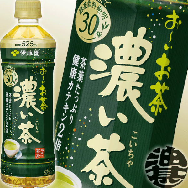 【お〜いお茶 濃い茶】525mlPET 鮮度茶葉(弱火火入れ)に抹茶を加え、切れのある渋みのおいしさが味わえます。 原料茶葉は、「お〜いお茶」専用に作られた、おいしさがぎゅっと詰まった茶葉と、バランスの良いおいしさをもつ茶葉をブレンドしています。 通常の約1.5倍(当社比)の茶葉を使用した、「茶葉たっぷり」の濃い美味しさです。 健康成分カテキンを2倍含有(当社比) 国産茶葉100%使用 無香料 原材料/緑茶(日本)、抹茶(日本)、ビタミンC 成分(100mlあたり)/エネルギー0kcal、たんぱく質0g、脂質0g、炭水化物0g、ナトリウム9mg、カテキン80mg